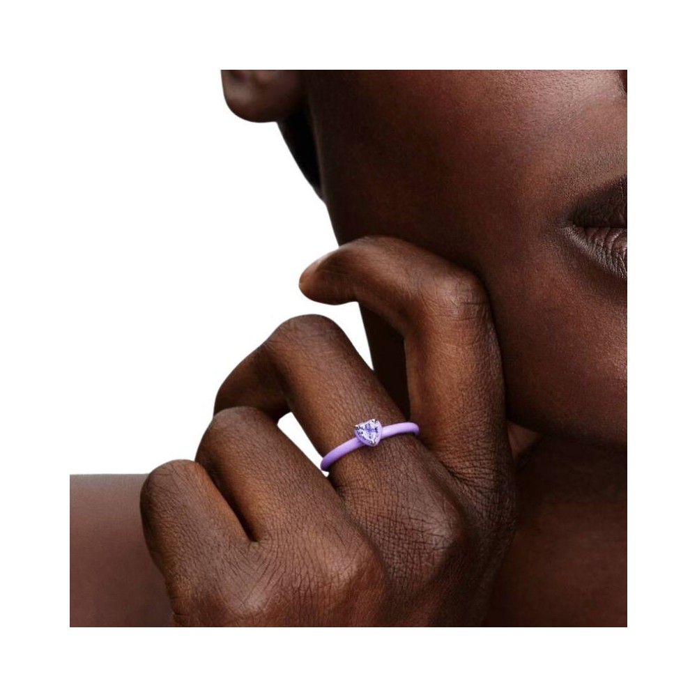 Esprimi l'amore per te stessa con questo anello in Argento Sterling 925 decorato da smalto viola e impreziosito al centro da un cristallo viola creato dall'uomo a forma di cuore.Perfetto per un look romantico.