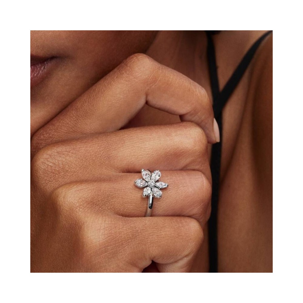 Un fiore che non appassirà mai. Questo anello in Argento Sterling 925 presenta un fiore in rilievo con pietre con taglio a marquise, a goccia e rotonde, enfatizzate da petali curvi. Un gioiello scintillante che durerà molte stagioni.