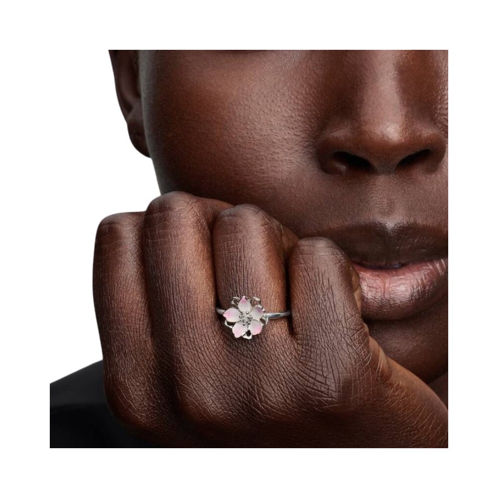 Crea un look raffinato. Questo anello presenta un fiore di ciliegio dipinto in smalto applicato a mano che ruota delicatamente sulla base in Argento Sterling 925. Un design primaverile simbolo di rinnovamento e crescita.
