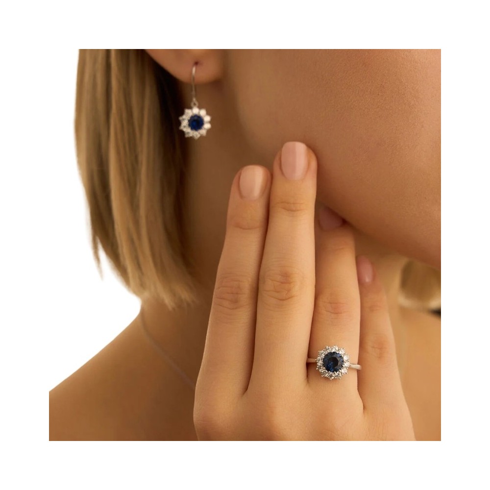 Anello Fantasia Fiore Silver Elegance Argento Rodiato 925 Cubic Zirconia Blu Cubic Zirconia Bianco 1694866
