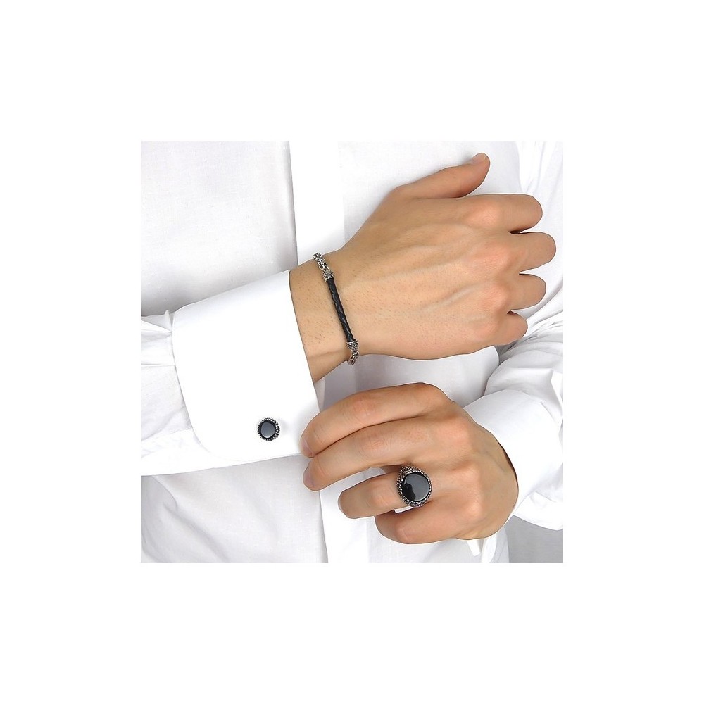 Anello da uomo Boccadamo collezione Man Grani in Argento 925% con una pietra di Agata nera.