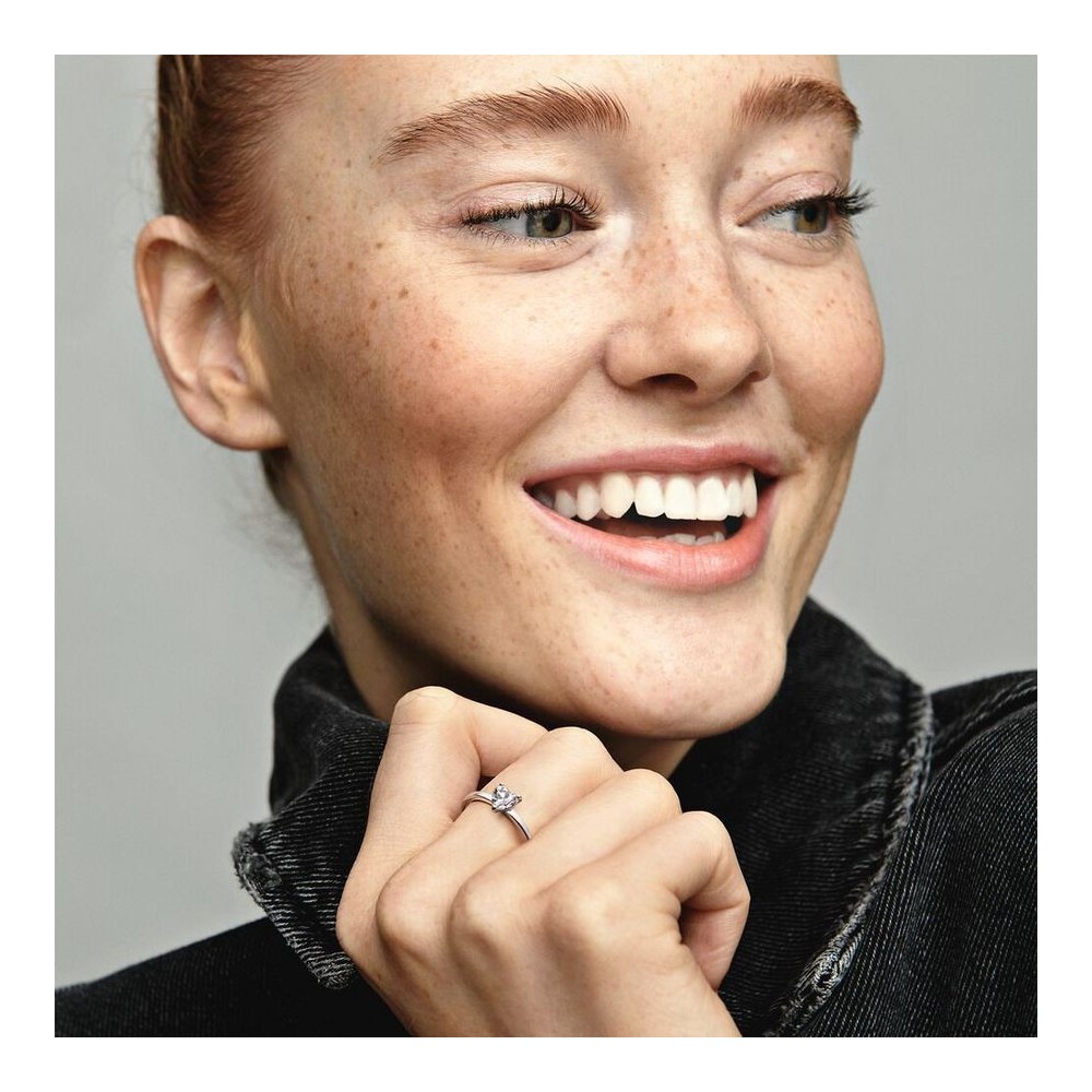Continua il tema delle pietre taglio cuore, aggiungendo un solitario alla collezione Pandora Timeless: questo anello presenta una pietra di zirconia cubica a forma di cuore al centro con logo Pandora inciso all’interno. Abbina l’anello con altri gioielli in argento sterling 925