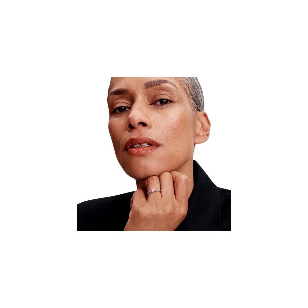Scopri l'Anello Fiocco Luminoso Rosa: un gioiello elegante realizzato in Argento Sterling 925. Questo anello è decorato da due pietre di zirconia cubica rosa taglio cuore incastonate a griffe che creano l'elemento centrale, un delicato fiocco che simboleggia la luce e le feste. La fascia è decorata da 14 pietre di zirconia cubica incolore taglio brillante rotondo incastonate a granette che aggiungono luminosità. Perfetto da abbinare sia ad outfit casual che formali, questo anello aggiunge un tocco di colore a qualsiasi look.