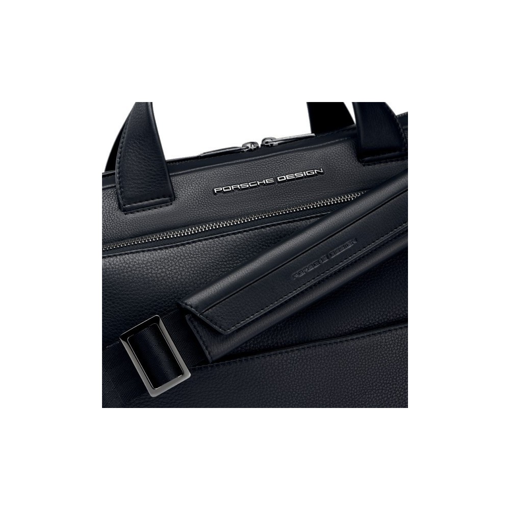 Cartella Portacomputer Roadster Medium realizzata 100% Pelle effetto martellato,Fodera interna in poliestere, Chiusura con cerniera impermeabile antipioggia, Tiralampo Nichel Free personalizzati con logo Porsche Design. Fascia sul retro per aggancio al traino di un trolley. Due scomparti. Tasca frontale chiusa con zip. Tracolla regolabile con fibbia autobloccante. Nel suo interno Troviamo Tasca per laptop 17 pollici imbottita e protetta in EVA, Organizer da lavoro, Tasca per smartphone, Tasca grande con zip.Portachiavi integrato.Dimensioni; Altezza 30 cm, Lunghezza 43 cm, Profondità 12 cm.Peso: 1,8 kg.