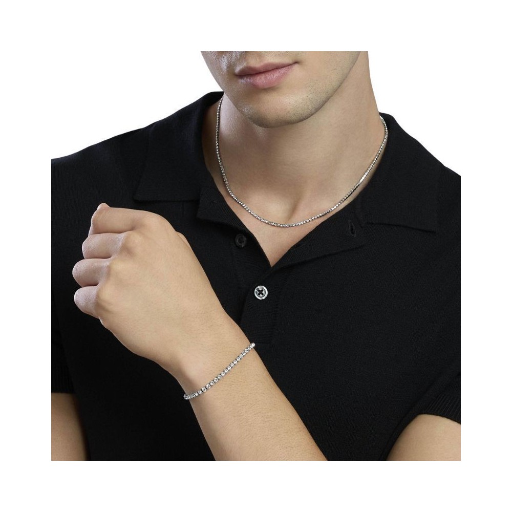 Bracciale regolabile in acciaio con tennis di zirconi bianchi.• Diametro cristalli: 3 mm• Misura regolabile, lunghezza da 19 a 20 cm• Materiale: Acciaio 316L, Cristalli
