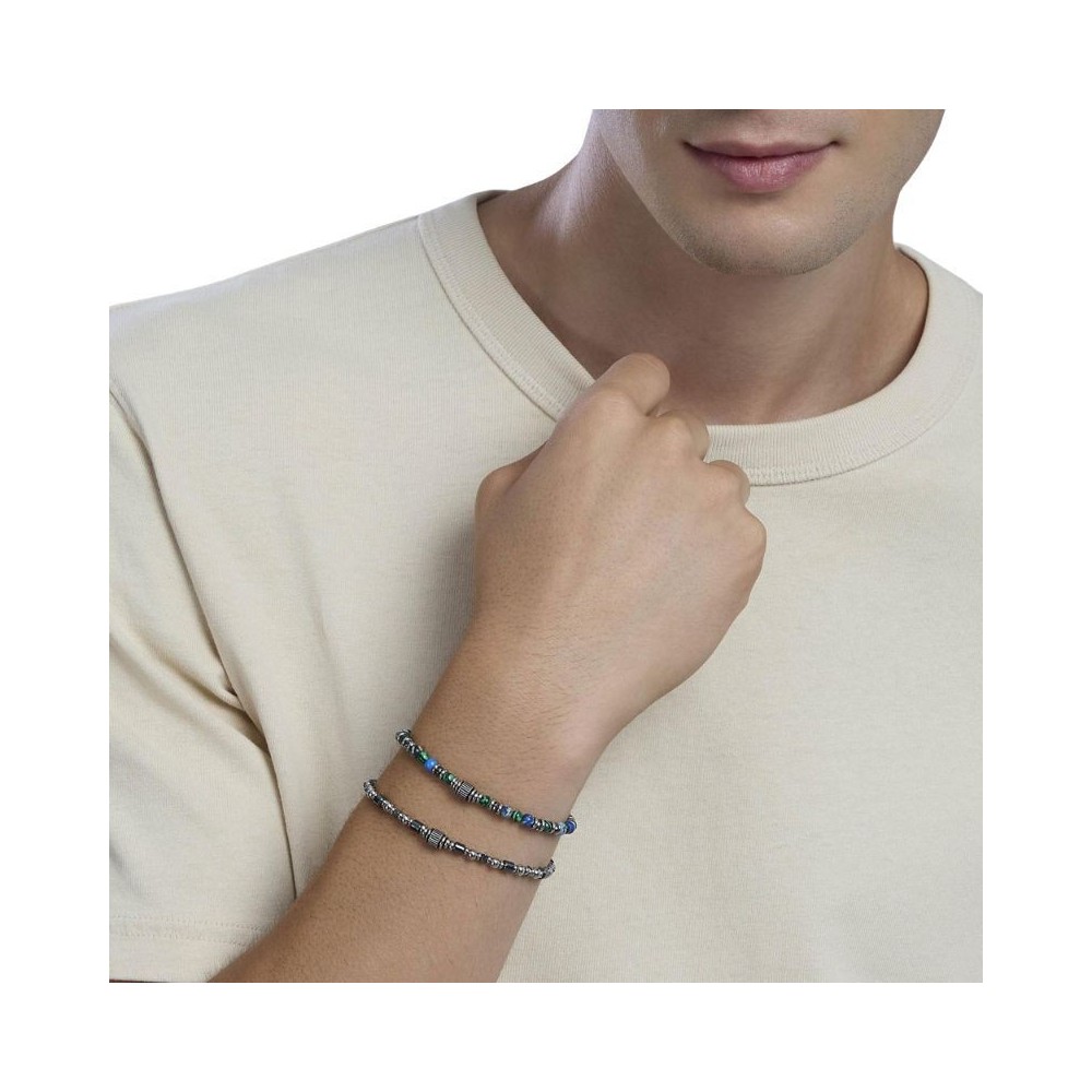 Bracciale regolabile in acciaio con con elemento centrale a strisce, cilindri e cubetti faccettati in ematite.• Dimensione elemento: 6,6x6 mm• Diametro cilindri: 3,7 mm• Dimensione ematite: 4 e 2,7x2,7 mm• Misura regolabile, lunghezza da 19 a 21 cm• Materiale: Acciaio 316L, Ematite