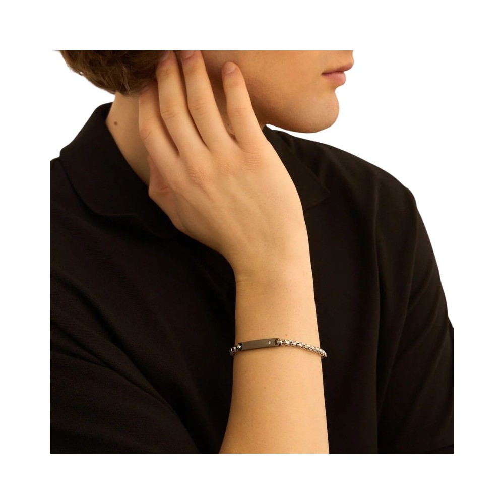 Bracciale Con Targhetta Man Code Acciaio Bicolore Bianco-Nero Cubic Zirconia Bianco 21 cm 1624999