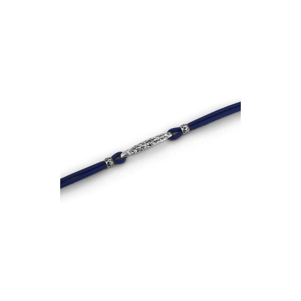 Bracciale da uomo Boccadamo collezione Radici in pelle blu intrecciata con decoro centrale in Argento 925%. Chiusura a moschettone.