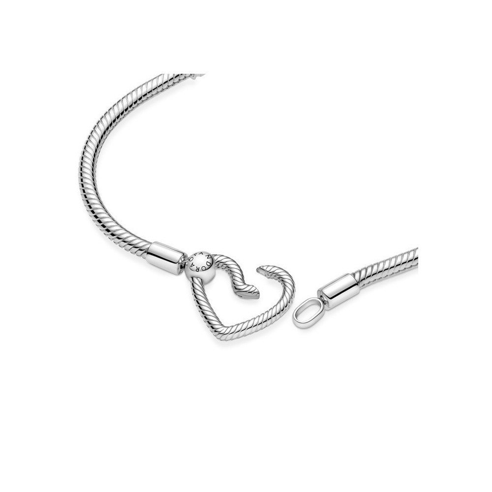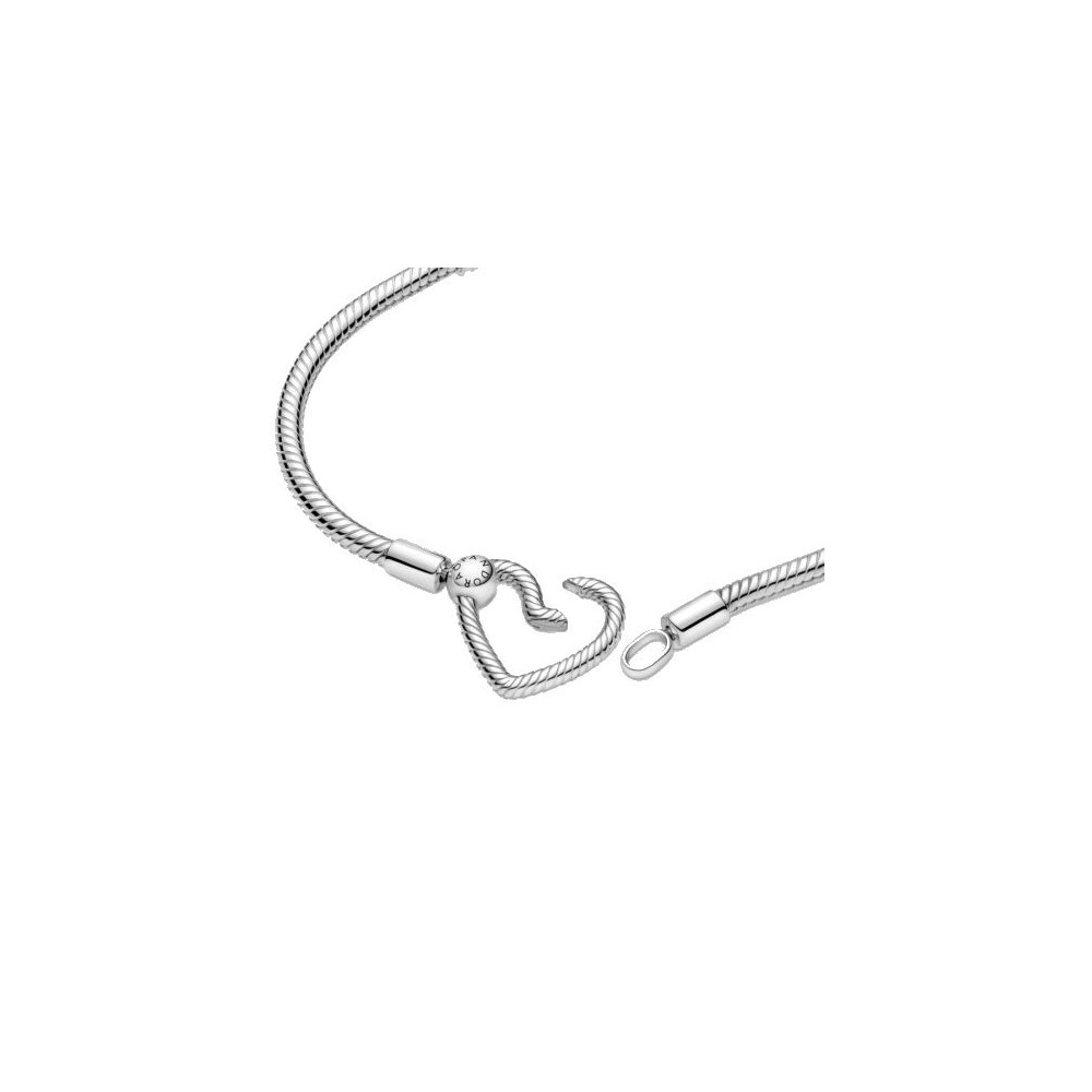Il bracciale, realizzato in Argento Sterling 925, presenta l’iconica maglia snake Pandora e una chiusura a cuore. Quest’ultima funziona come la chiusura a moschettone e può essere completata con un massimo di due pendenti. Inoltre la chiusura ruota, donando al bracciale un tocco sorprendente e dinamico. Inserisci i tuoi charm preferiti sul bracciale per creare un look perfettamente personalizzato.