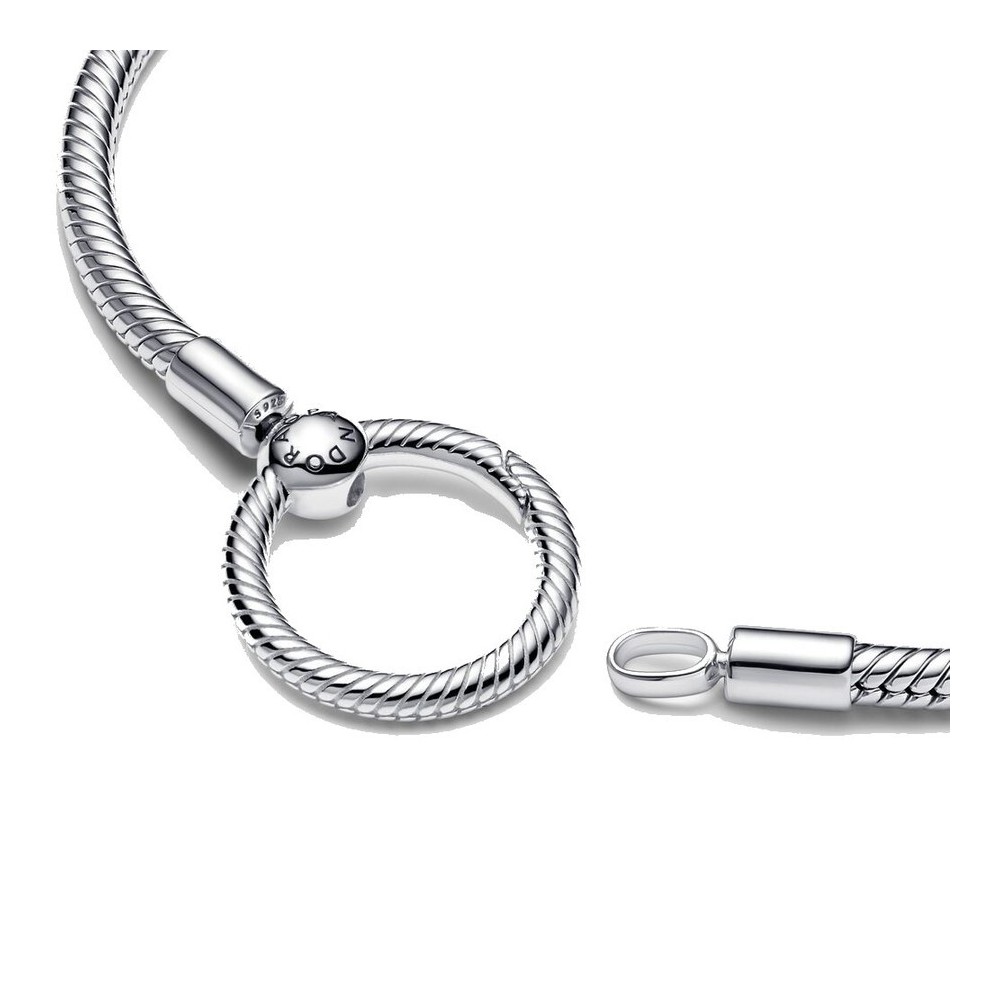 Bracciale realizzato in argento sterling 925, la nuova versione di questo amatissimo gioiello presenta l'iconico motivo a maglia snake di Pandora ed è completata da una chiusura rotonda. La chiusura può contenere fino a due pendenti e ruota per aggiungere un tocco di movimento dinamico. Abbina questo bracciale iconico ai tuoi charm preferiti e crea un look personalizzato.