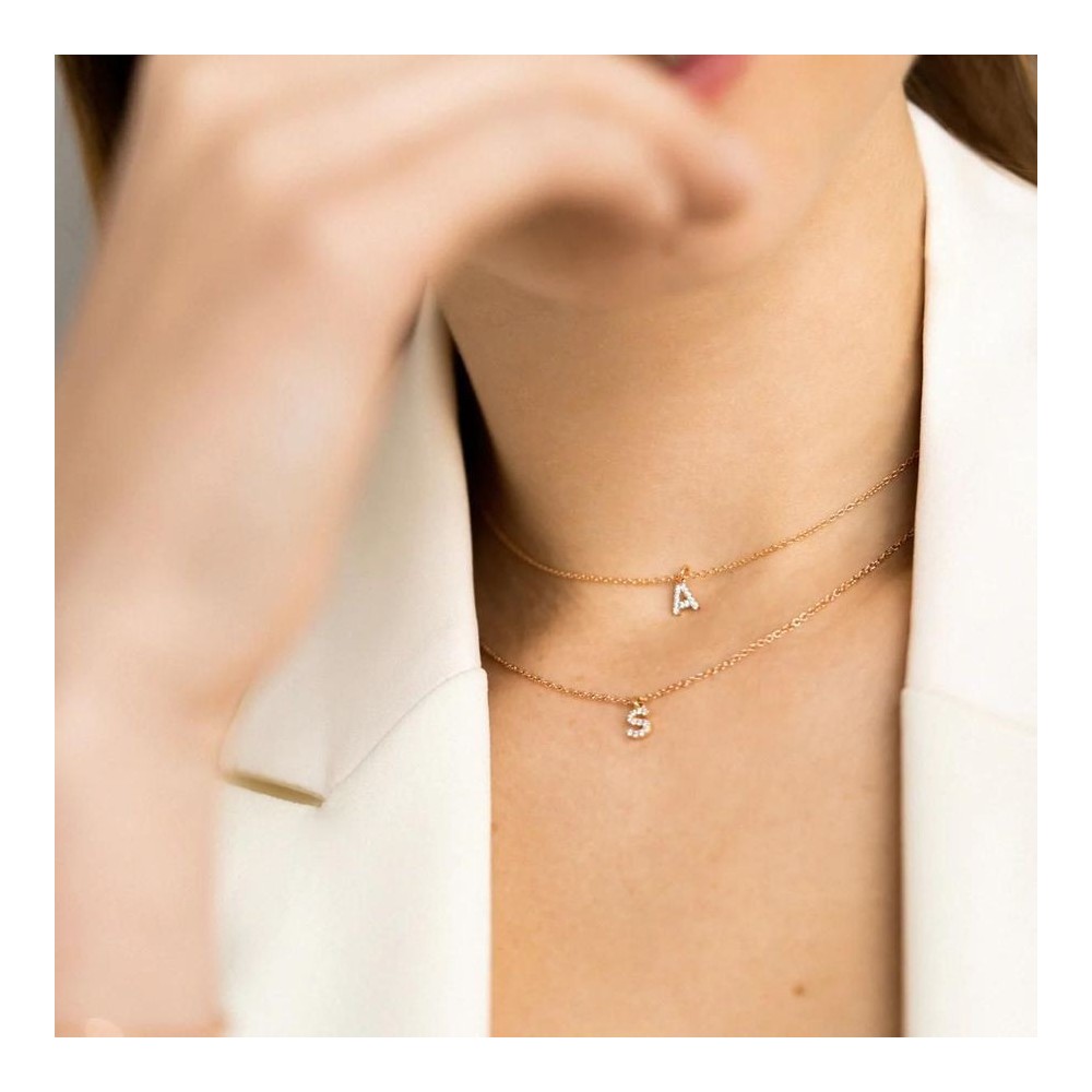 Girocollo Rue des mille con catena sottile e lettera centrale con zirconi bianchi realizzata in argento con finitura in oro giallo 18ct Lunghezza: 38 cm + estensione 6 cm