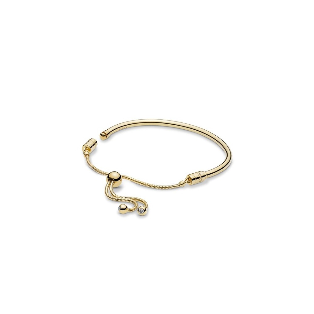 Bracciale rigido da donna Pandora in lega metallica placcata in oro giallo e pietre di zirconi con chiusura scorrevole.