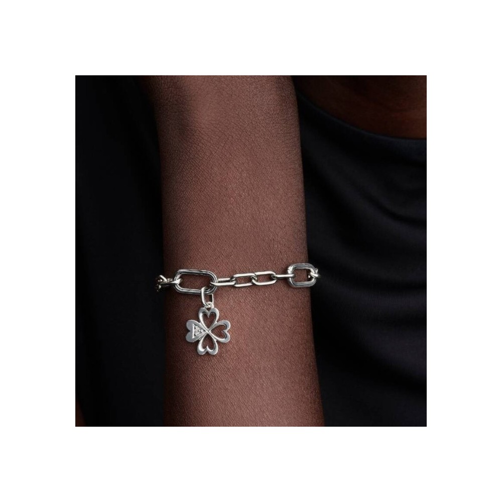 Ti senti fortunata? Aggiungi il nuovo charm Quadrifoglio in Argento Sterling 925 alla tua collezione. Decorato da foglie a forma di cuore, zirconia cubica scintillante e sfere, indossalo ogni giorno per ricordare che la fortuna è sempre al tuo fianco.