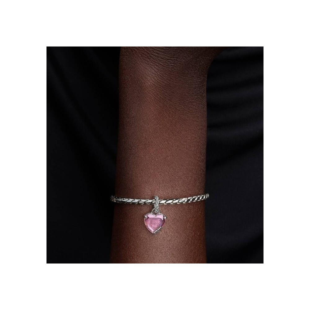 Esprimi tutto il tuo amore per la Festa della Mamma con il nuovo charm pendente a cuore inciso. Una pietra rosa a cuore è incastonata nella montatura realizzata in Argento Sterling 925 con la parola MOM incisa. Il cuore custodisce il messaggio I LOVE YOU.