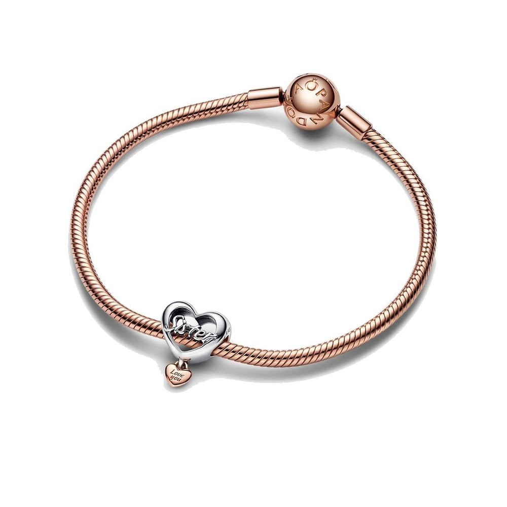 Questo charm bicolore celebra la famiglia e la gioia che porta con sé. Un cuore inciso con placcatura in oro rosa 14k pende da un altro cuore in argento sterling 925 decorato con la parola “Sister”. Indossa questo charm per far sapere a tua sorella ciò che significa per te.