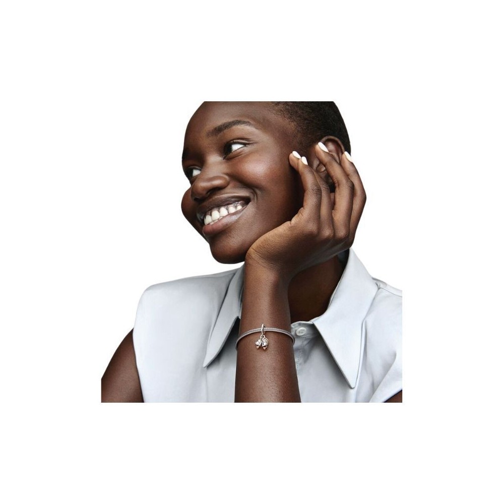 Il Charm Pendente Campane Nuziali Just Married è una celebrazione del traguardo più importante di ogni storia d'amore. Il gioiello presenta due campane nuziali pendenti in Argento Sterling 925, ognuna con all'interno un piccolo pendente a forma di cuore nell'esclusiva lega metallica placcata oro rosa 14k. Una campana reca l'incisione You e l'altra Me . Un disco nell'esclusiva lega metallica placcata oro rosa 14k con il messaggio Just married” (Appena sposati) completa il charm.
