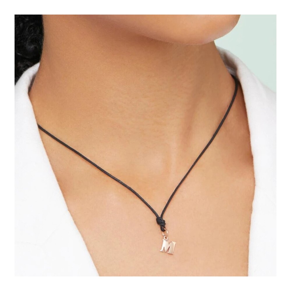 Ciondolo lettera M in oro rosa 9K - modello grande. Cordino nero incluso.Dimensioni: 7,30 x 8,30