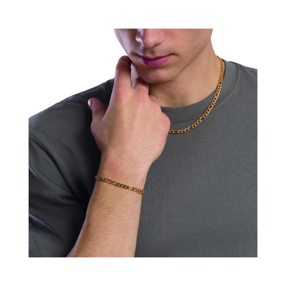 Collana con catena figaro in acciaio dorato.-Dimensione catena: 5 mm-Misura unica, lunghezza 60 cm-Materiale: Acciaio 316L, PVD giallo