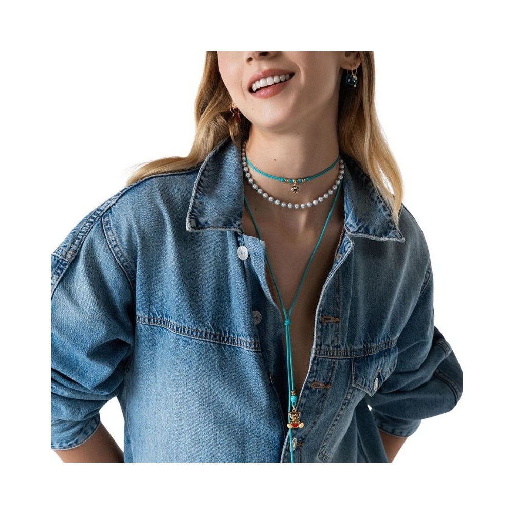 Il Girocollo Base in Perle di Madreperla è un gioiello raffinato e versatile, ideale come base per charms o da indossare da solo per un look elegante e luminoso. Le perle di madreperla, delicate e luminose, sono intervallate da inserti in zirconi Milky turchesi, che donano un tocco di colore brillante, sofisticato e originale.Realizzato in lega RDM con argentatura 925 e rifinito con galvanica in oro 18Kt, questo girocollo unisce qualità, resistenza e stile elegante. Grazie al design a filo continuo, può essere indossato singolarmente per un effetto raffinato o combinato con charms per creare un gioiello unico e personalizzato.