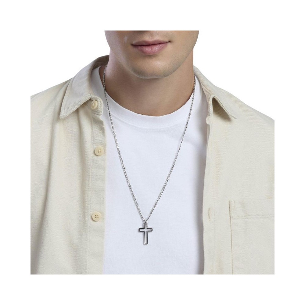 Collana in acciaio con catena figaro e pendente croce.• Dimensione croce: 21x32,5 mm• Larghezza catena: 3 mm• Misura unica, lunghezza 65 cm• Materiale: Acciaio 316L