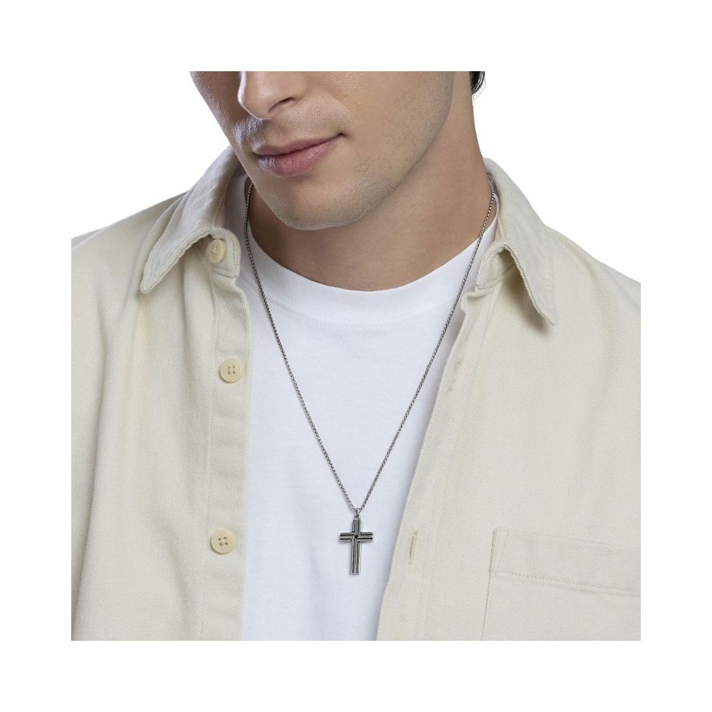 Collana regolabile con catena veneta in acciaio con pendente croce con cristallo nero.• Dimensione croce: 18,6x29,2 mm• Diametro cristallo: 2 mm• Larghezza catena: 1,8 mm• Misura regolabile, lunghezza da 45 a 50 cm• Materiale: Acciaio 316L, Cristallo
