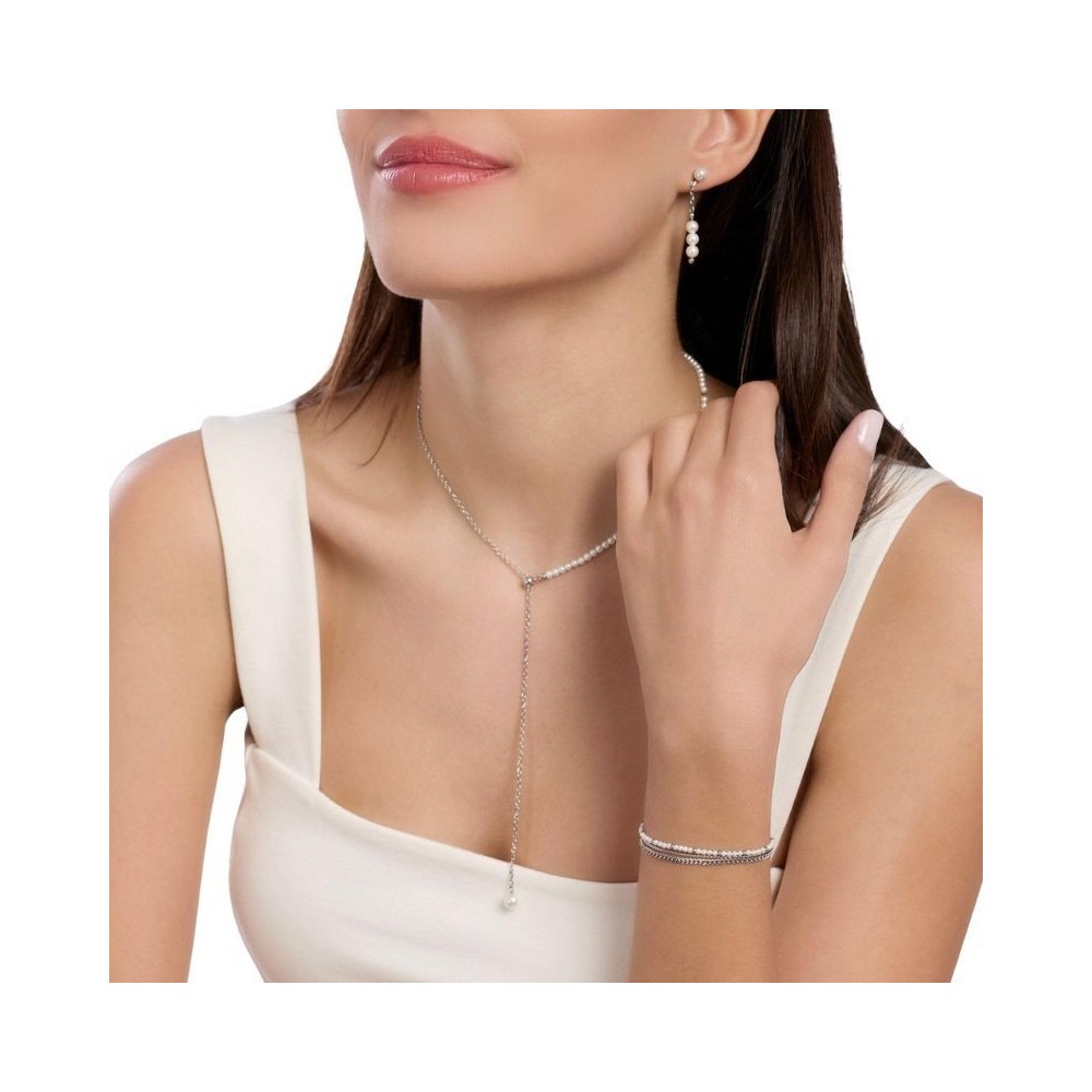 Collana in acciaio con catena forzatina diamantata, slider regolabile e perle conchiglia.• Diametro slider: 5 mm• Diametro perle conchiglia: 3 e 5 mm• Misura unica, lunghezza 57 cm• Materiale: Acciaio 316L, Perle conchiglia