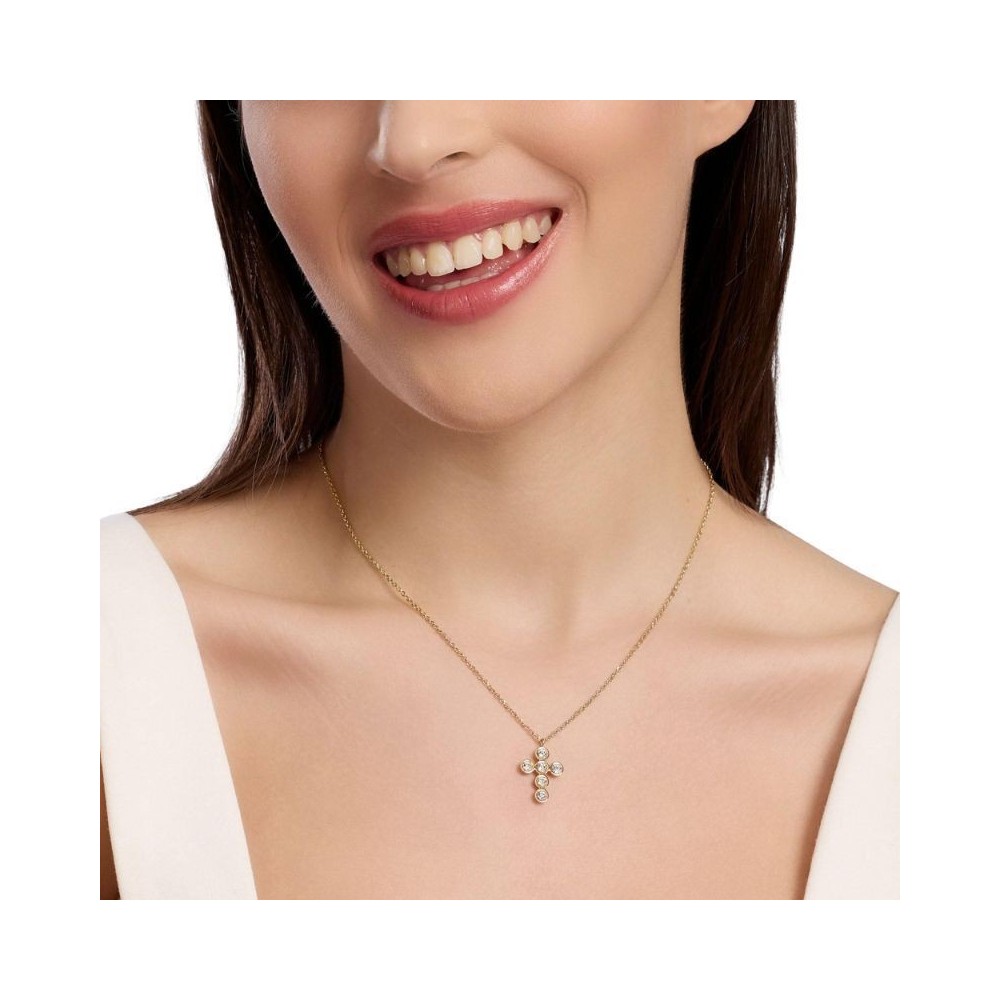 Girocollo regolabile in acciaio dorato con catena rolò e pendente croce con cristalli.• Dimensione croce: 13,8x18,4 mm• Diametro cristalli: 3 mm• Misura regolabile, lunghezza da 40 a 45 cm• Materiale: Acciaio 316L, PVD giallo, Cristalli