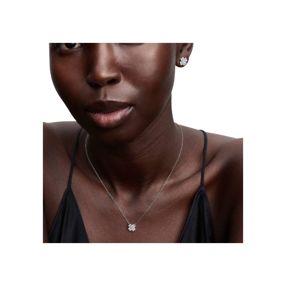 Ti senti fortunata? Questa collana con pendente a forma di quadrifoglio, realizzata in Argento Sterling 925 con scintillanti pietre a cuore, aggiunge un tocco naturale a qualsiasi look.