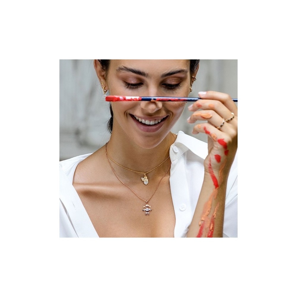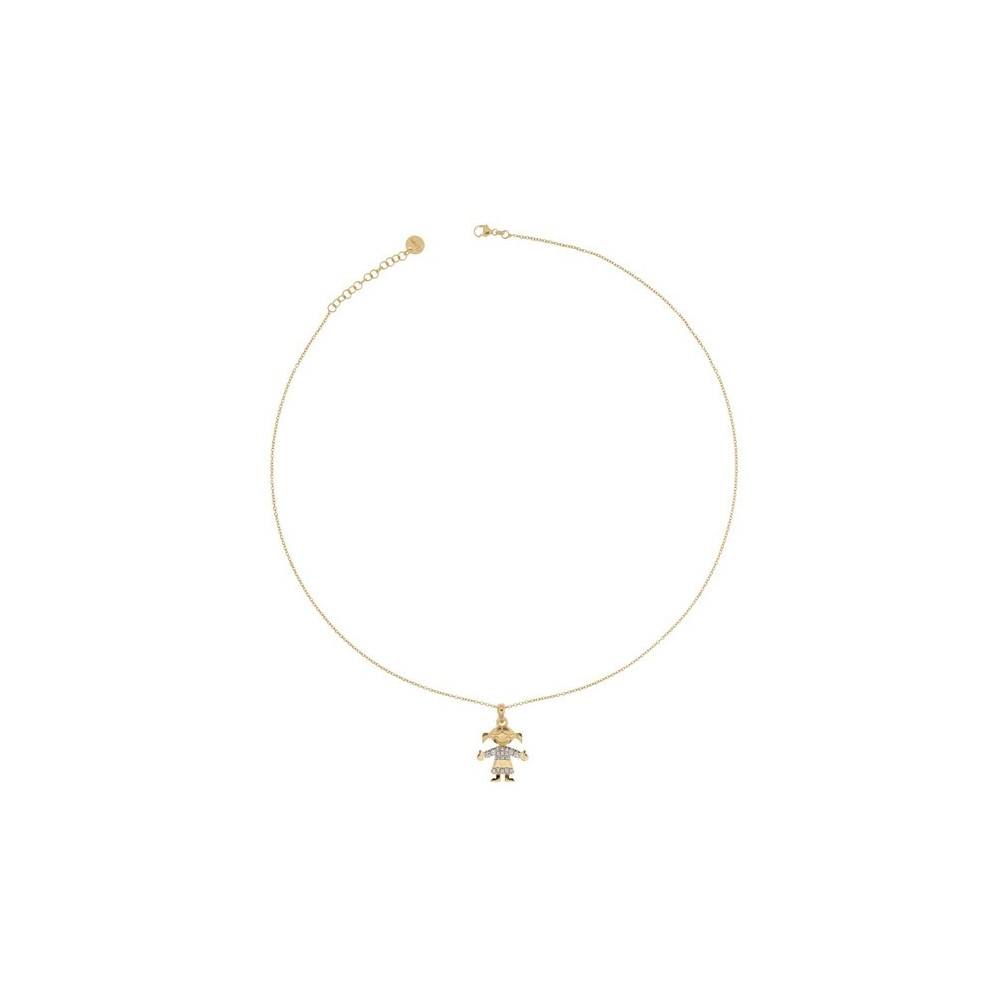 Girocollo Rue Des Mille con ciondolo bimba realizzato in Argento 925 placcato in oro 18k e decorato con pietre di zirconi.