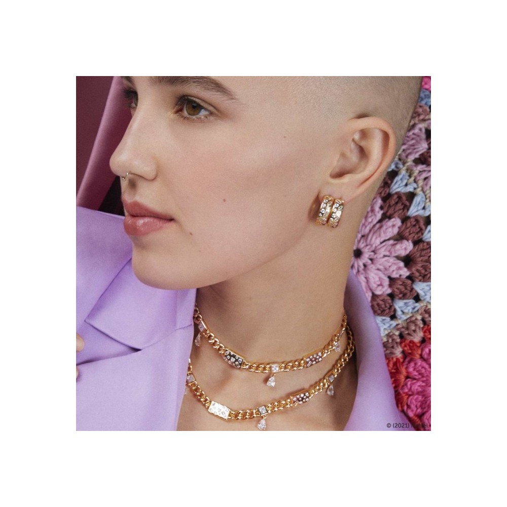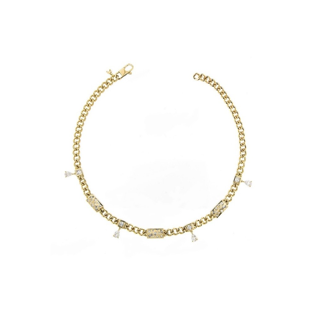 Girocollo con catena groumette bold Rue Des Mille collezione Barbie in Argento 9255 placcato in oro 18 kt intervallato da luminose pietre cubic zirconia bianco con tagli e sfaccettature diverse e pendenti con pietra taglio goccia.