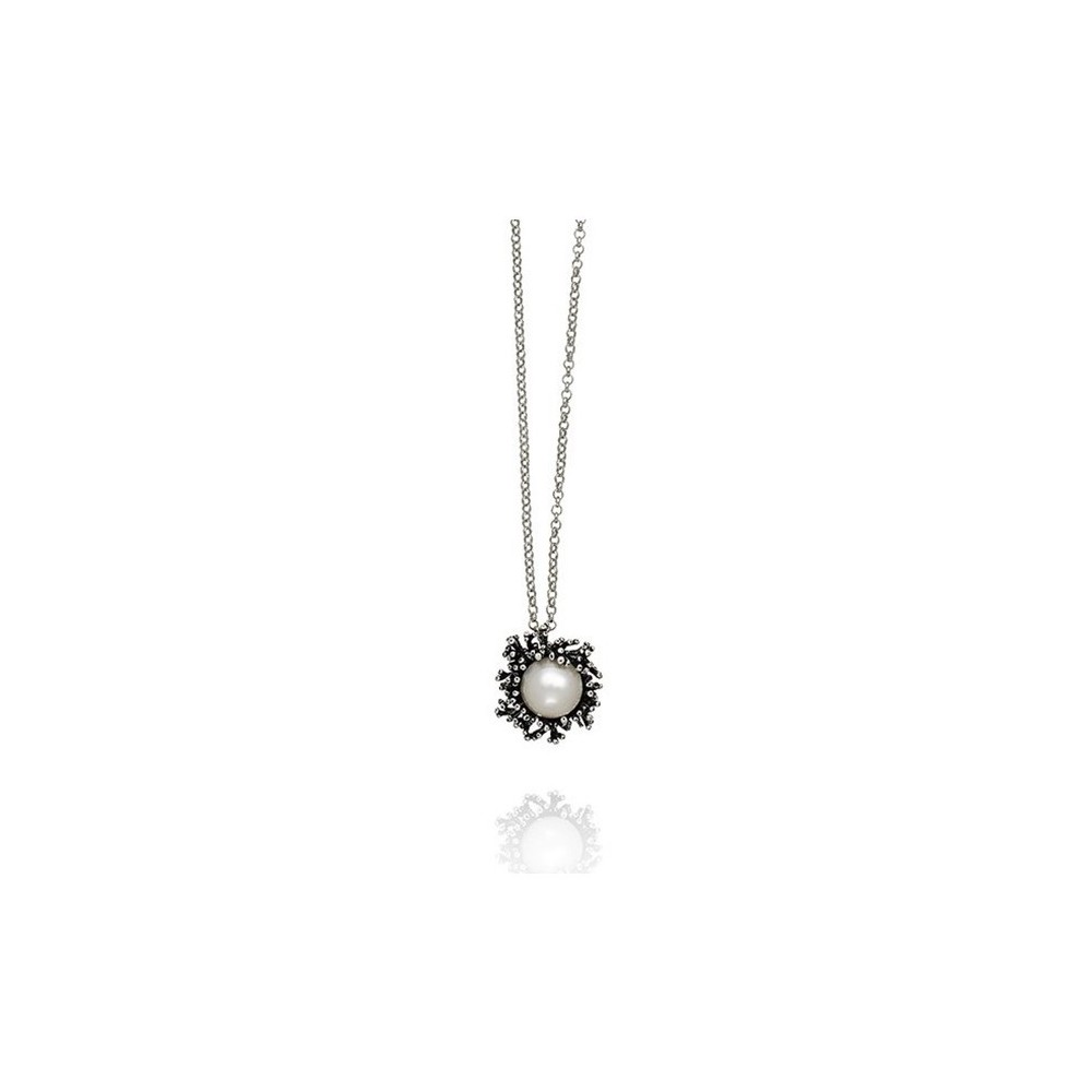 Pendente Giovanni Raspini collezione Anemone realizzato in Argento 925% decorato con una perla naturale centrale .
