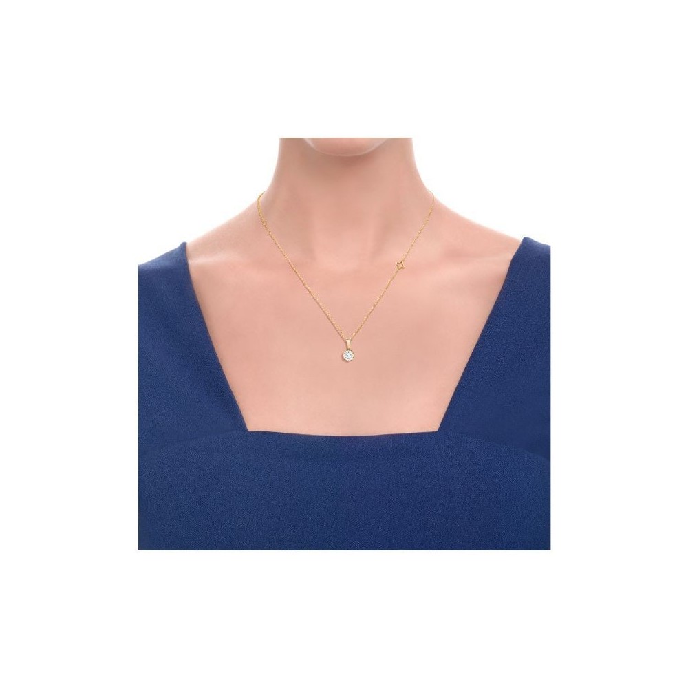 Girocollo punto luce a sei punte con biglierina lucida, oro giallo 18 Kt e diamante naturale taglio brillante ct 0,185 F VVS. Misura 45cm.