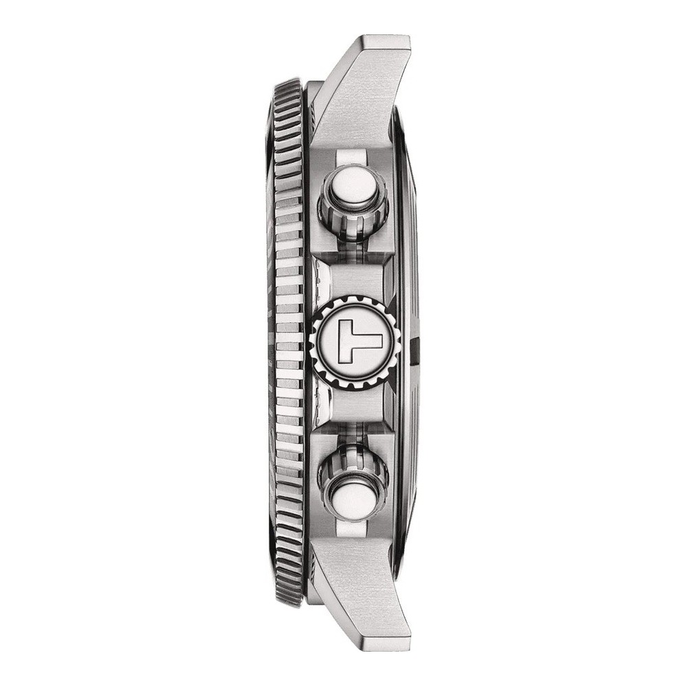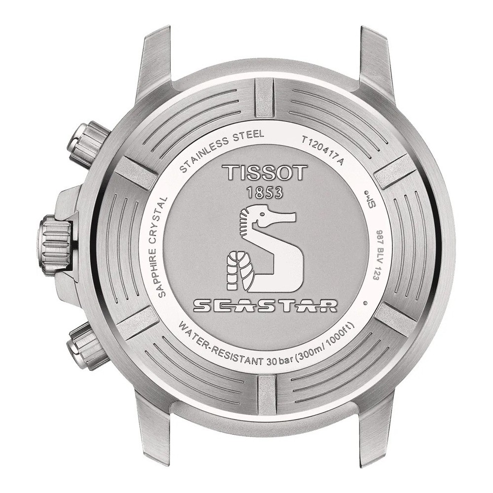 Il Tissot Seastar 1000 è l'orologio per gli amanti del mare per eccellenza grazie all'elevata impermeabilità fino a 30 bar (300 m/1.000 ft), al binomio fondello e corona a vite e ad una lunetta unidirezionale in ceramica. Il modello monta un movimento automatico.Cassa in acciaio inossidabile 316L ha una dimensioni di 45mm e uno Spessore di 12.8 mm,Anse 22.00mmForma della cassa Rotondo, Vetro zaffiro antigraffio con trattamento antiriflesso su entrambi i lati.Movimento Svizzero, al quarzo, batteria tipo Renata 394, EOL (indicatore fine carica batteria), central 60-seconds chronograph hand, 30-minutes and 1/10 of a second counters, Colore del quadrante blu sfumato,Cinturino in acciaio inossidabile, intercambiabile a sgancio rapido, chiusura standard con sicura ed estensione subacquea