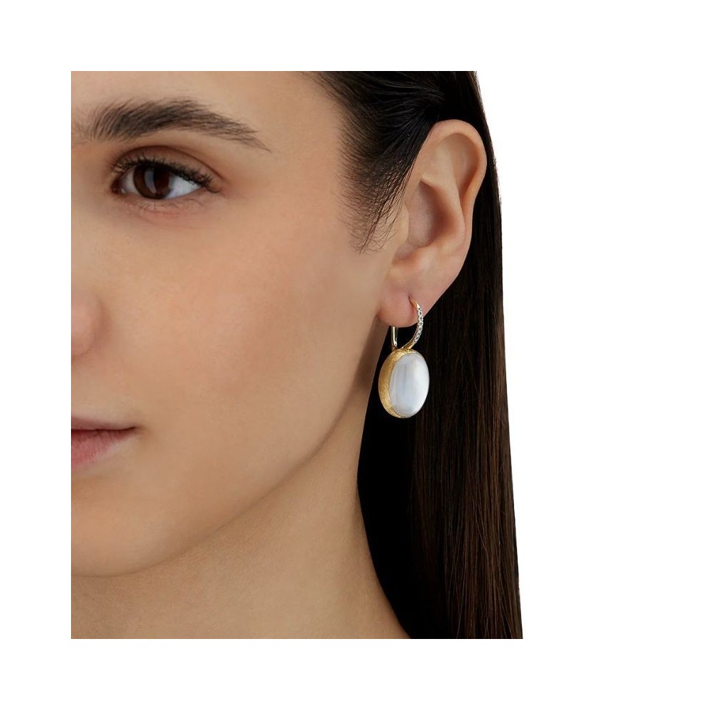 Gli orecchini Ciliegine, in oro 18kt inciso a mano, accolgono cristallo di rocca e madreperla in un abbraccio armonioso, celebrando l’eleganza senza tempo e la bellezza della materia.La chiusura con diamanti aggiunge luce, mentre le diverse dimensioni e modelli permettono mix unici. Ogni combinazione è un gesto personale, che racconta lo stile con naturalezza.DIAMANTI:- Peso (totale): 0,08 CT- Purezza: VS- Colore: GG- Taglio: brillante rotondo-Misura orecchino:15,20 mm x 33,50 mmPietre colore:- MADREPERLA Peso (totale): 18 CT