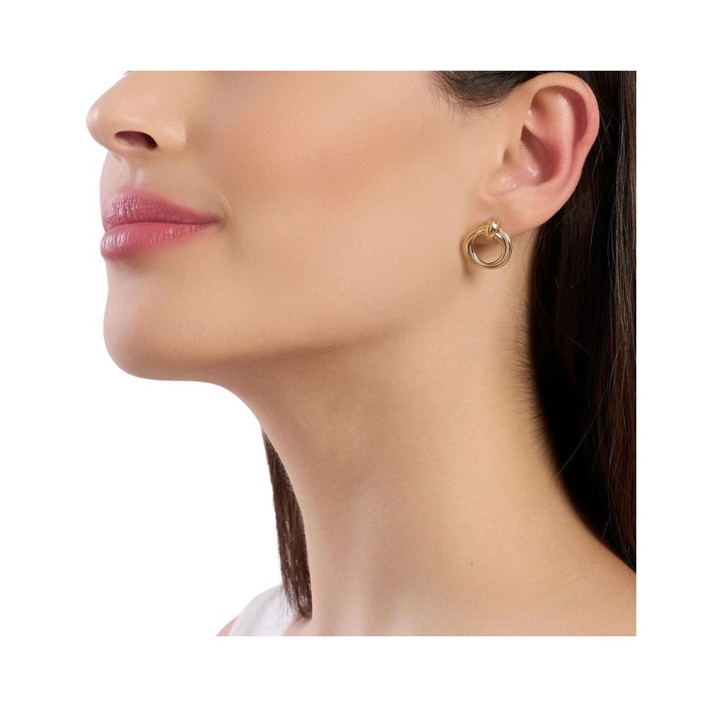 Orecchini in acciaio dorato con doppio cerchio.• Larghezza cerchio: 13,5 mm• Lunghezza totale dell'orecchino: 1,7 cm• Materiale: Acciaio 316L, PVD giallo