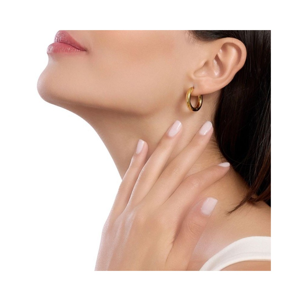 Orecchini a cerchio in acciaio dorato.• Diametro esterno: 21,8 mm• Diametro interno: 15,5 mm• Materiale: Acciaio 316L, PVD giallo