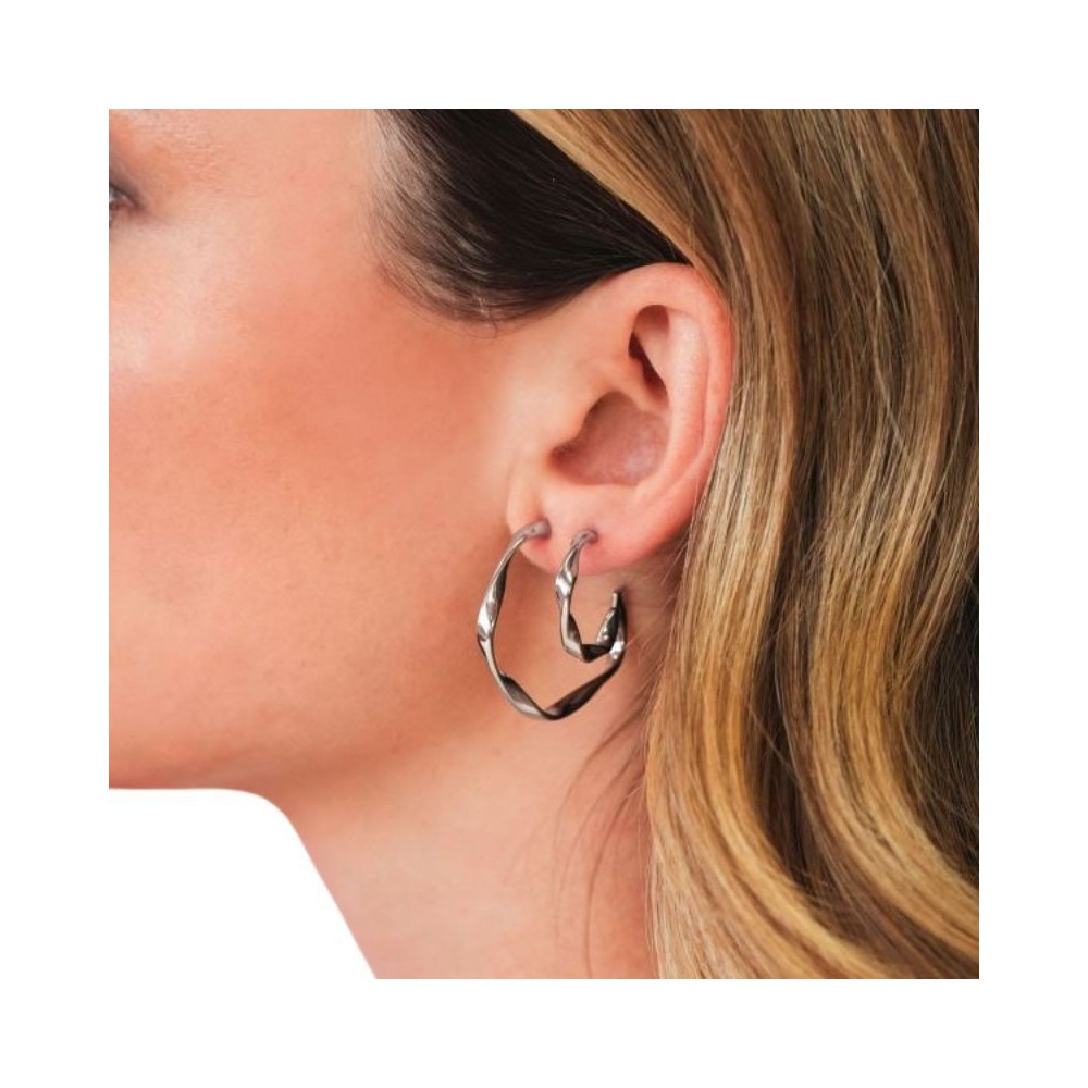 Orecchini in acciaio rodiato a forma di cerchio grande, ondulato torchonMisure: diametro cm 3x3Chiusura: a farfalla