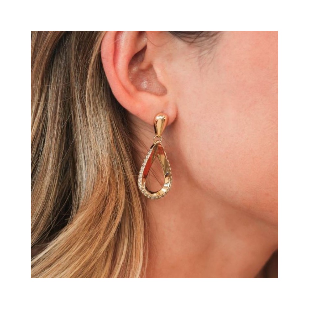 Orecchini placcati oro giallo a lobo con pendente a goccia definito da zirconi.Misure: cm 4Dimensione: zirconi mm 4Chiusura: a farfalla