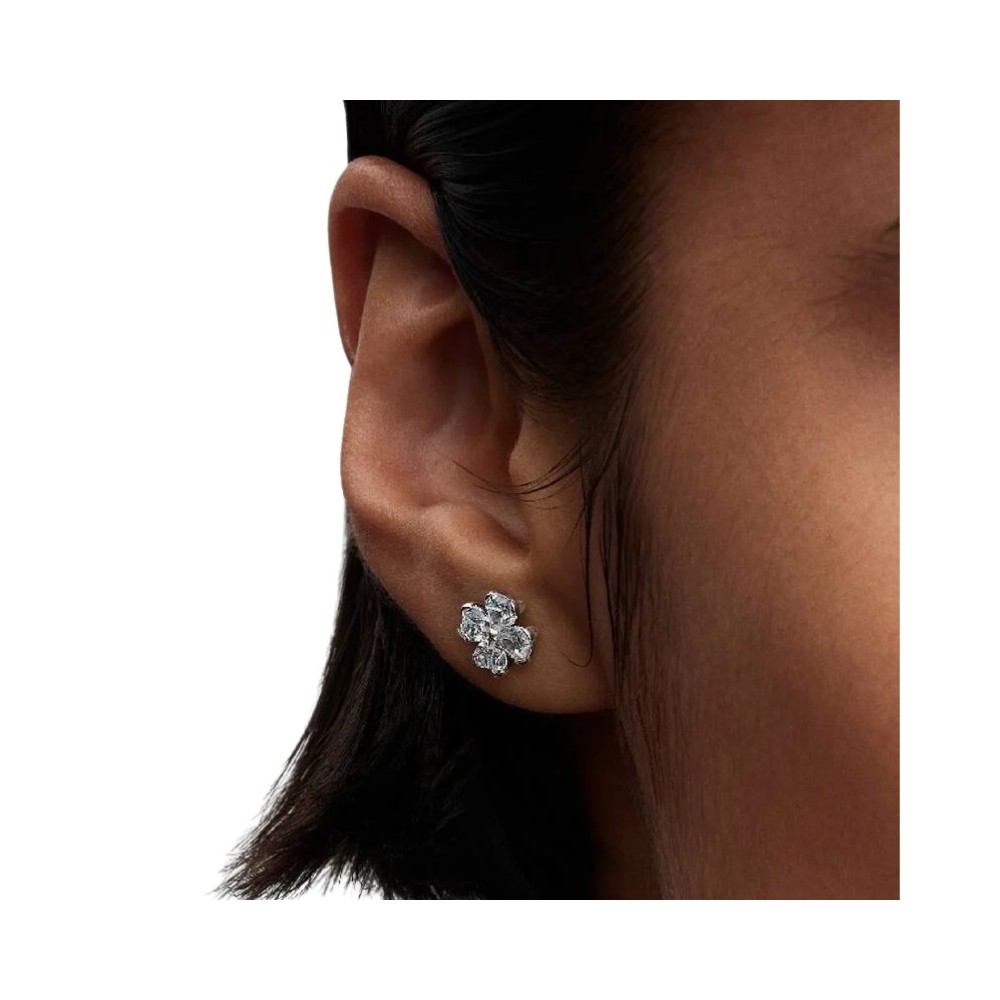 Sii unica. Questi orecchini a lobo in Argento Sterling 925 brillano grazie a pietre a cuore che formano un quadrifoglio. Una celebrazione della bellezza della natura e dei simboli dell'amore e della buona sorte.