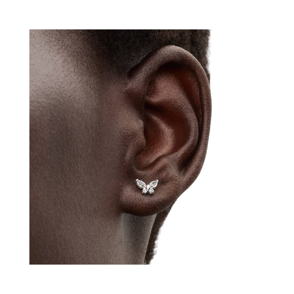 Cattura la bellezza della trasformazione con i nostri orecchini a lobo con farfalla. Decorati da zirconia cubica incolore e realizzati in Argento Sterling 925, sono perfetti per far volare il tuo stile.