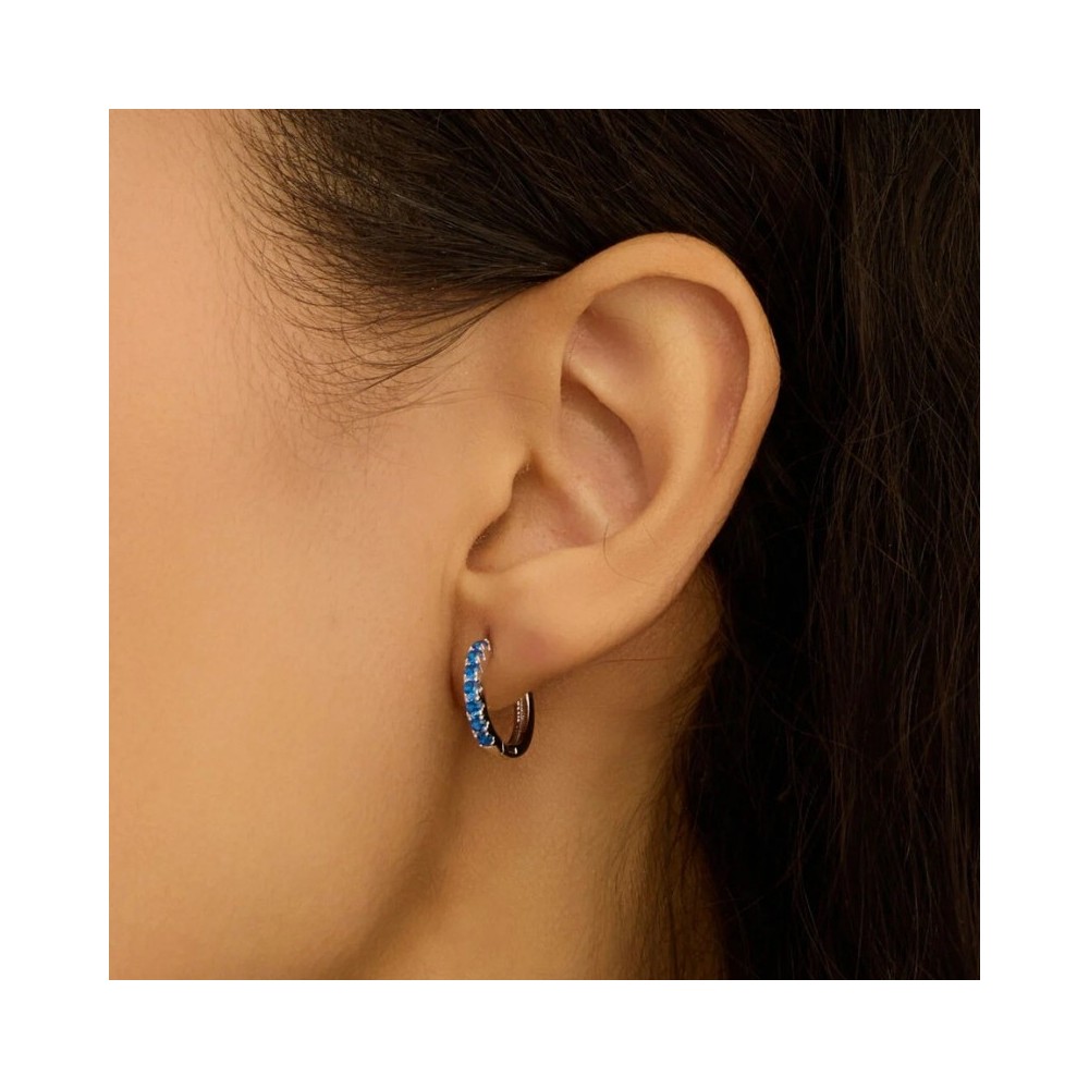 Orecchini A Cerchio Silver Rainbow Argento Rodiato 925 Diametro 15 mm Cubic Zirconia Blu 1682431