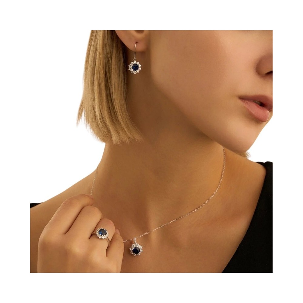 Orecchini Pendenti Fiore Silver Elegance Argento Rodiato 925 Cubic Zirconia Blu Cubic Zirconia Bianco 1694861