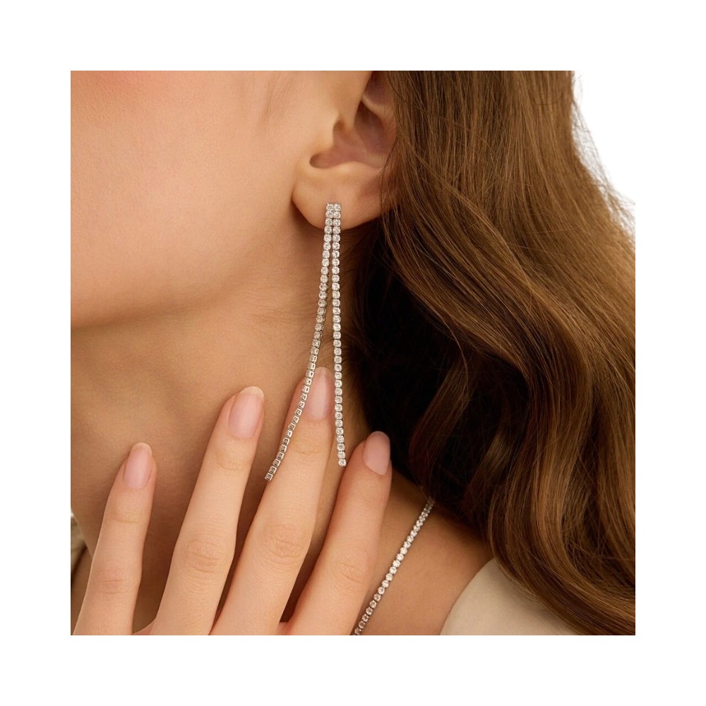 Orecchini Pendenti Tennis Romantic Shine Metallo Cristallo Bianco 1658225