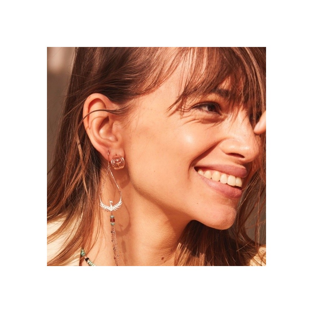 Mono orecchino a lobo Maman Et Sophie Fenice realizzato in Argento 9255 placcato in oro rosa con chiusura a farfalla.