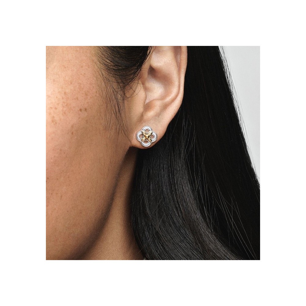 Orecchini a lobo Pandora collezione Moments Fiore Bicolore in Argento 925% e Oro 14k.