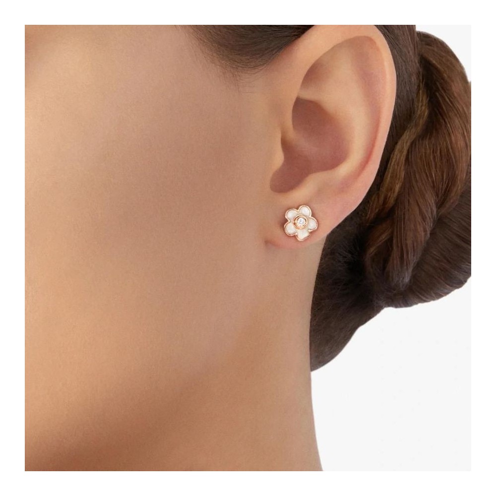 Mono orecchino Dodo fiore oro rosa 9kt smalto madreperla e diamante bianco (ct 0.03).