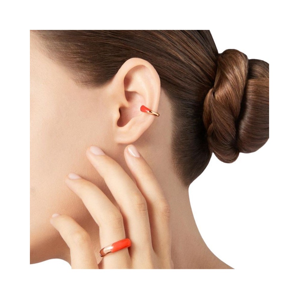 Earcuff rondelle in argento dorato oro rosa 18K e smalto rosso.Una collezione intramontabile, da collezionare e tramandare! Tra riflessi d’oro, argento e titanio, la collezione Rondelle svela tutta la sua allegra originalità.