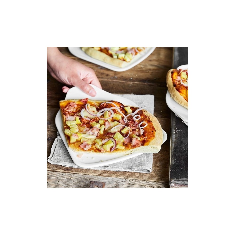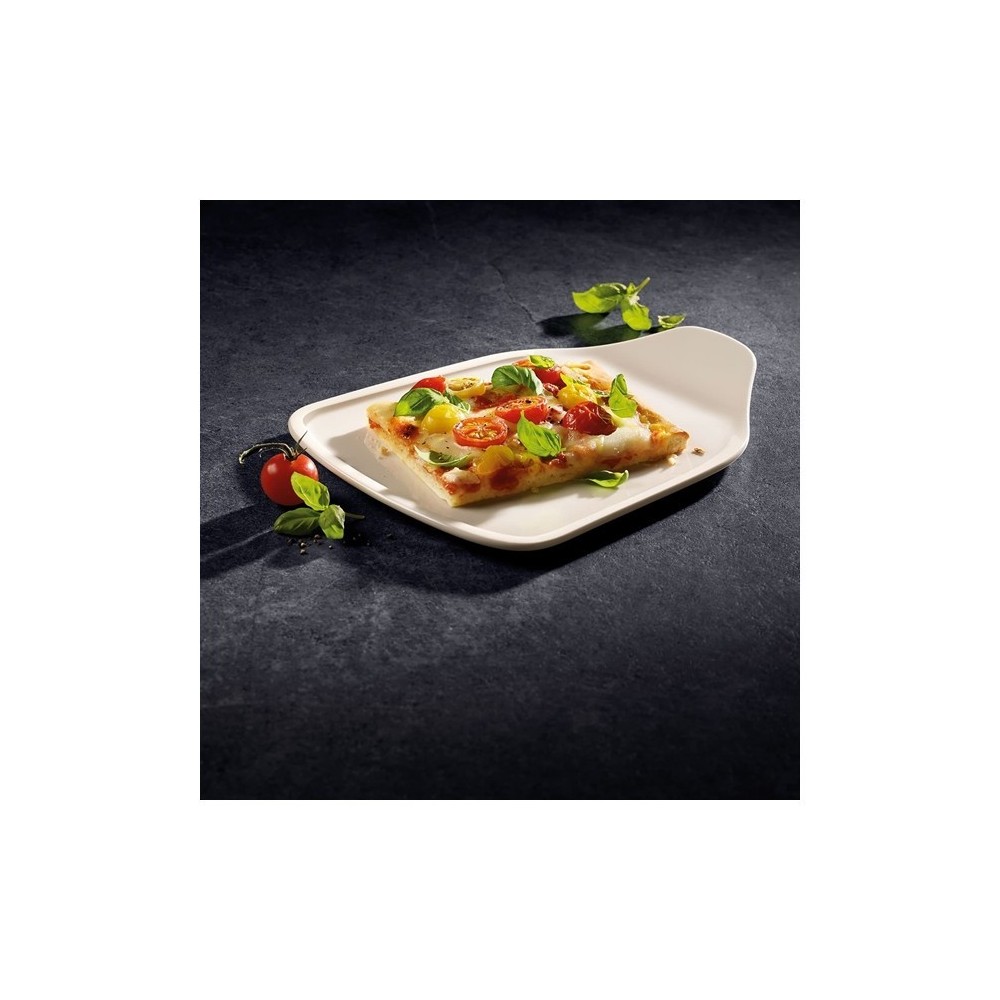 Piatto per tranci di pizza Villeroy & Boch in Porcellana Premium ,perfetto per una fetta di pizza grande o piccola, in piedi o a tavola. Moderni piatti per tranci di pizza con manico intelligente per gli amanti della specialità italiana, ottimi per mangiare la pizza in compagnia. Adatti anche per la ristorazione grazie alla forma semplice, portabili con una mano, bordi resistenti agli urti. Lavabili in lavastoviglie, adatti al microonde e al forno fino a 200 °C