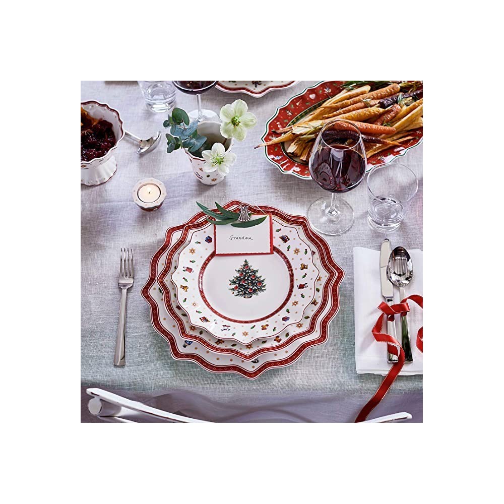 Piatto segnaposto per un’elegantissima tavola delle festeCon la collezione Toy's Delight porterete una nostalgica atmosfera natalizia nella vostra casa. La porcellana è decorata con graziosi motivi color rosso, verde e bianco e rievoca ricordi d'infanzia. Da abbinare, collezionare e regalare. Questo piatto segnaposto è grazioso e dà un tocco di eleganza al banchetto di Natale. È perfetto per occasioni di festa con famigliari e ospiti. Allestite una tavola natalizia perfetta.Diametro: 35cm