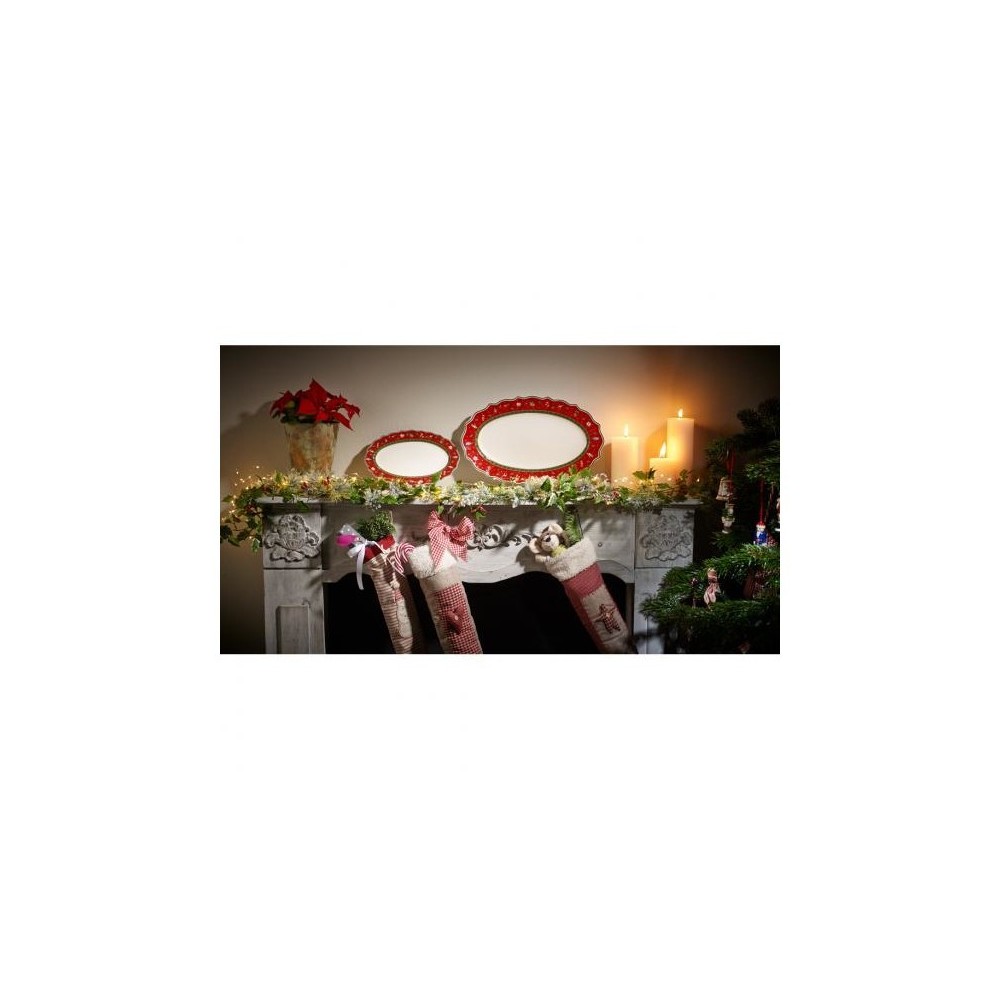 Piatto ovale con bordo decorativo.Le stoviglie Toy's Delight di Villeroy & Boch includono piatti dalla forma originale, in stile leggermente retrò, decorati con motivi natalizi: alberi di Natale, stelle, rami di agrifoglio e giocattoli. Mantenuto nei colori bianco, verde e rosso, è chiaramente associato al Natale, contribuirà a creare un'atmosfera unica e accogliente durante le riunioni congiunte a tavola. Alcune delle collezioni Toy's Delight di Villeroy & Boch sono disponibili in tre versioni di colore: rosso, bianco e verde, che ti consentono di creare le tue stoviglie uniche.Dimensioni: 38 x 23,5 cm